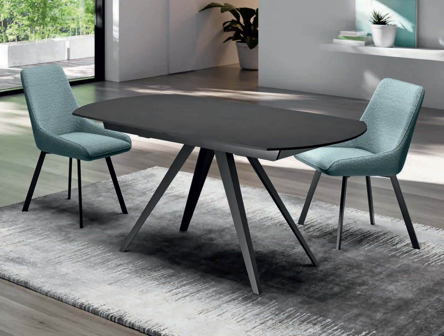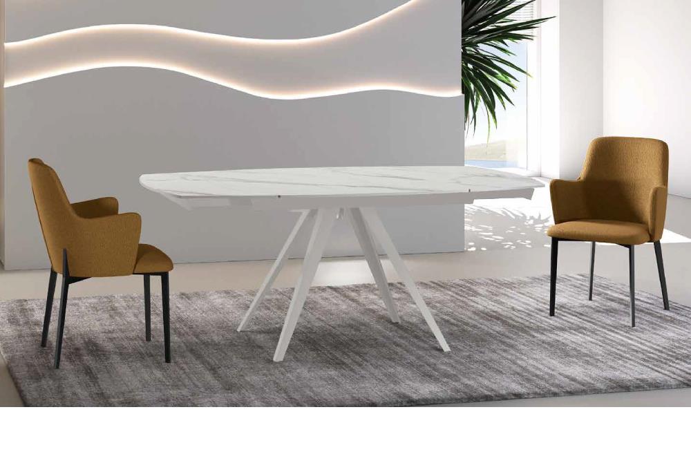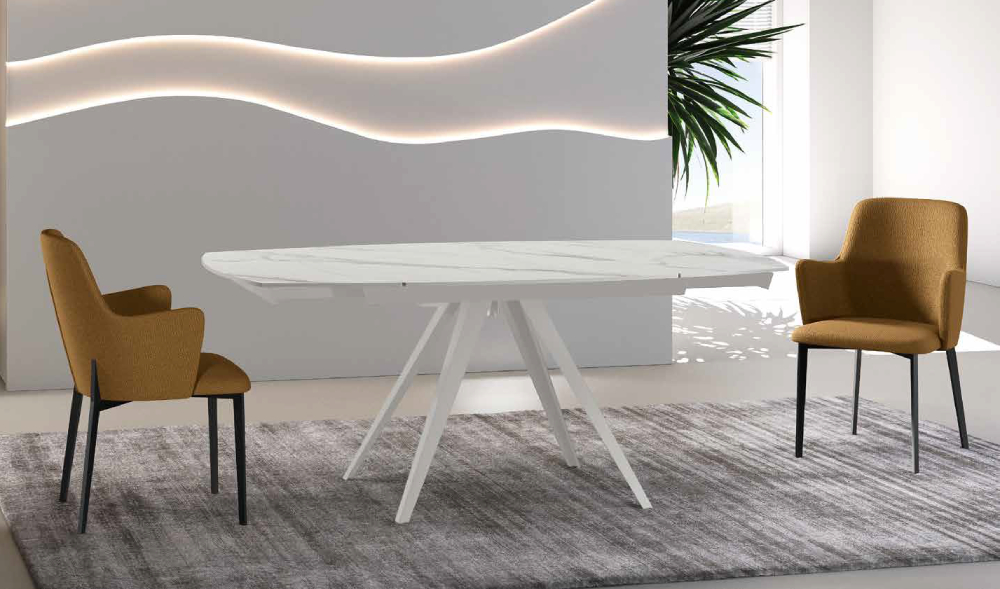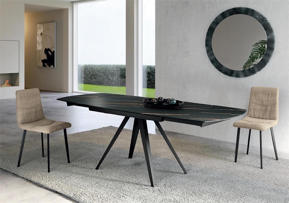 Kyoto è un tavolo che unisce equilibrio e dinamismo in un design sofisticato e contemporaneo. Il piano in ceramica esalta la matericità delle superfici, mentre la base in metallo, con le sue linee geometriche e slanciate, conferisce leggerezza e carattere. Un complemento d'arredo che dialoga con lo spazio, donando stile e personalità all'ambiente. Il pratico meccanismo a rotazione permette di allungare il tavolo con un semplice gesto.