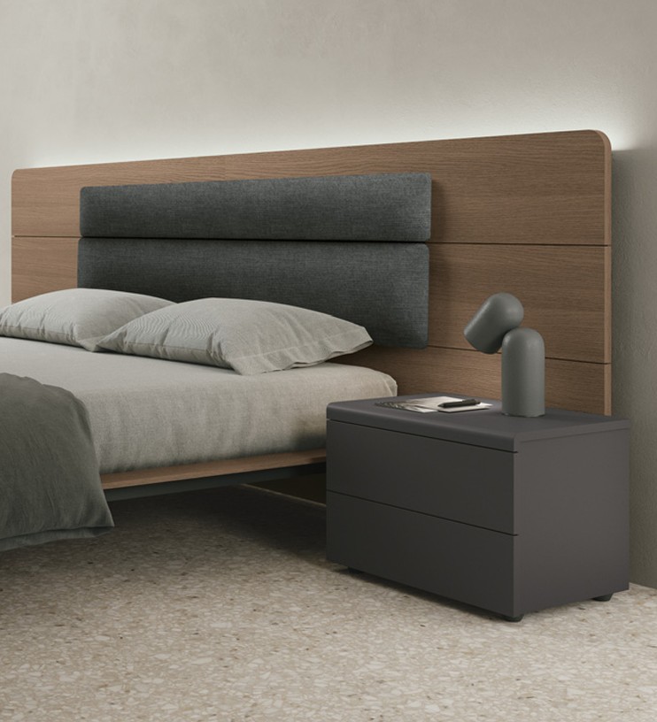 Il pannello imbottito in tessuto è adattabile per fornire morbidezza e comfort. Un perfetto equilibrio tra relax, materia e design.