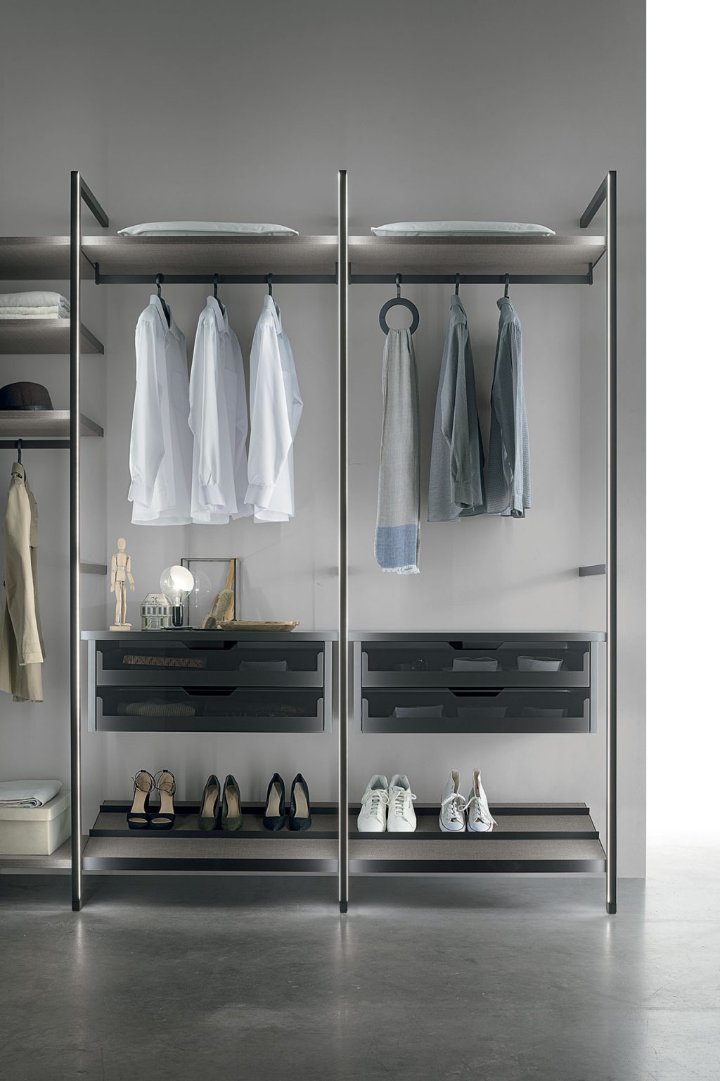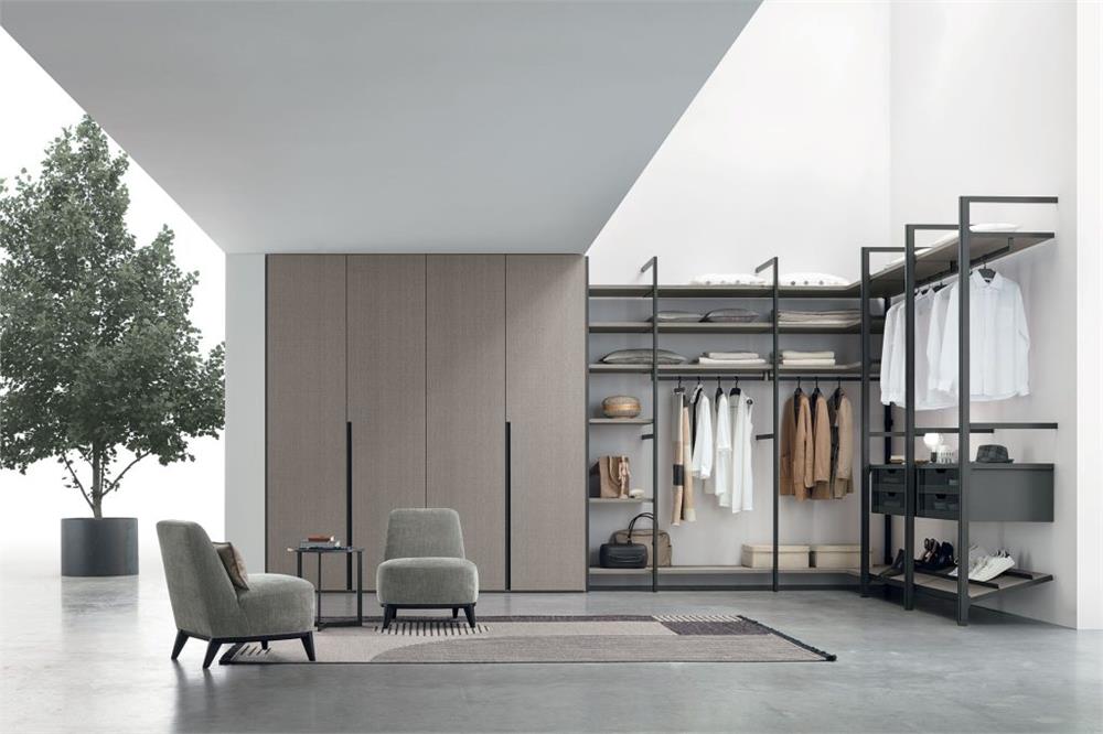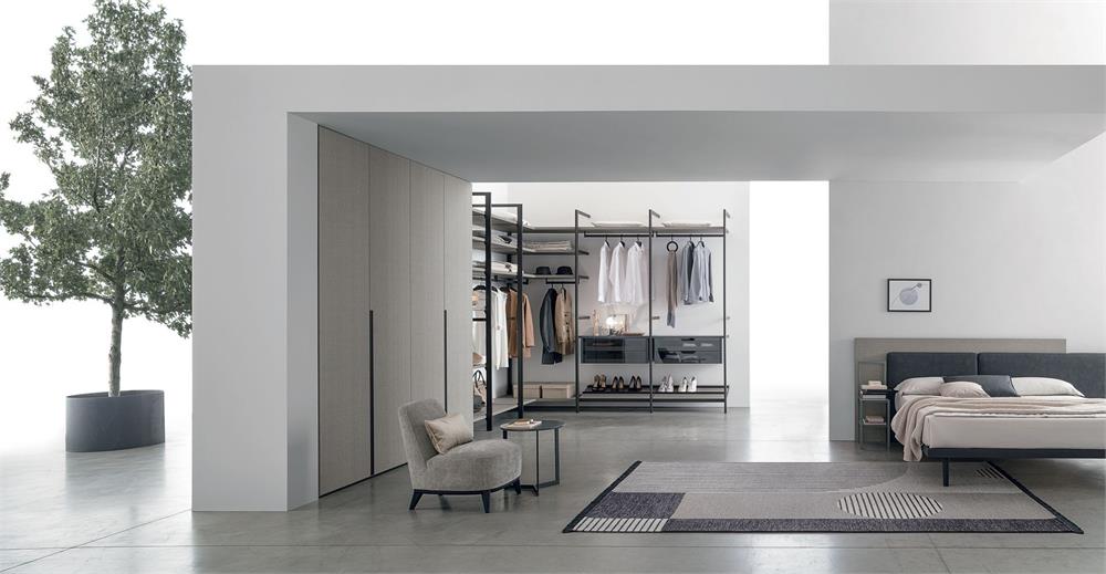 Liberty è una cabina armadio formata da telai in metallo fissati a parete e a soffitto.