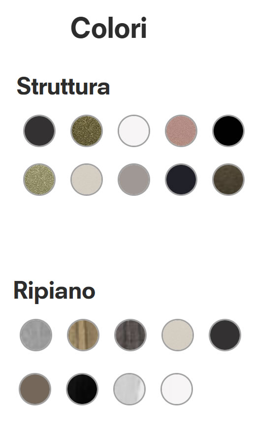 Metallo Bianco, Sabbia, Tortora o Grigio Ardesia. Laminato Bianco, Sabbia, Tortora o Grigio Ardesia.