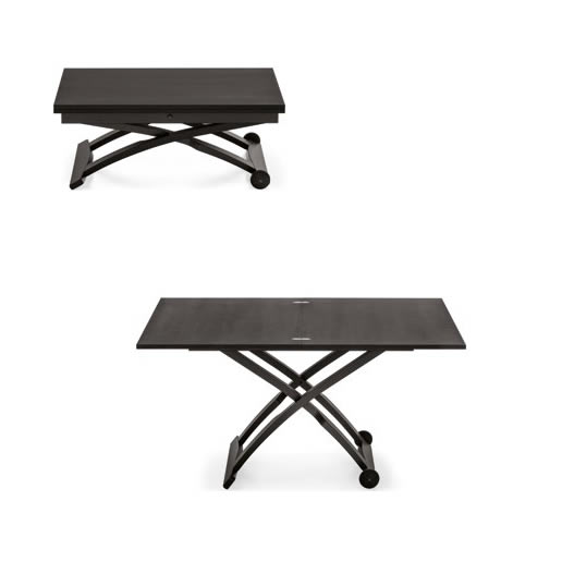 I meccanismi all'avanguardia incorporati sul tavolo MASCOTTE gli consentono non solo di allungarsi fino a raddoppiare l'estensione del piano, ma anche di regolare l'altezza in sette posizioni diverse facendo semplicemente pressione sul bottone riposto lateralmente sulla struttura.