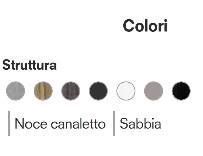 Il mobile è caratterizzato dalla collocazione al suo interno di due montanti in vetro trasparente spessore 10 mm, che sostengono la struttura e dividono gli spazi interni con leggera trasparenza. La struttura è realizzata in laminato ecologico spessore 25/18 mm.