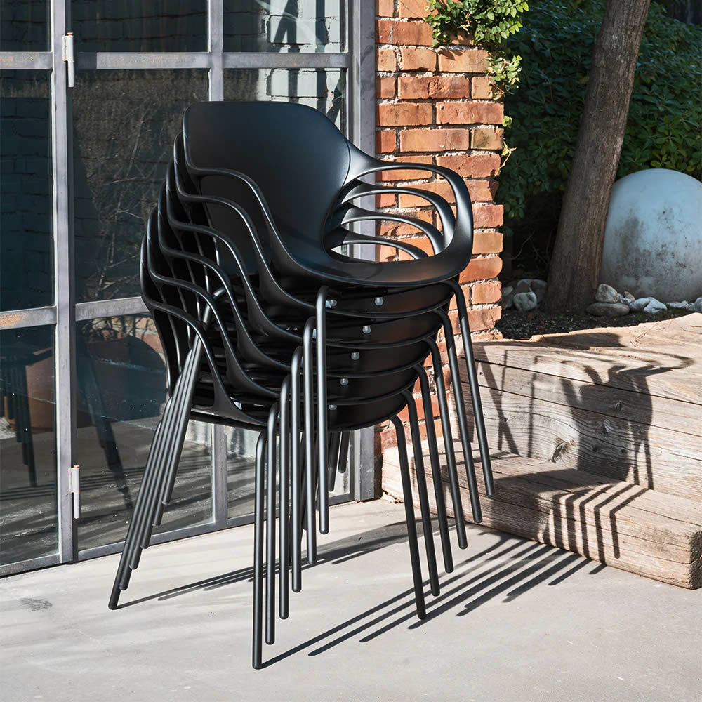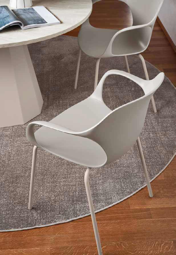 La sedia Ops!, disegnata dallo studio Archivolto, è capace di instaurare un dialogo armonioso tra design e sostenibilità. Disponibile anche nella versione senza braccioli.