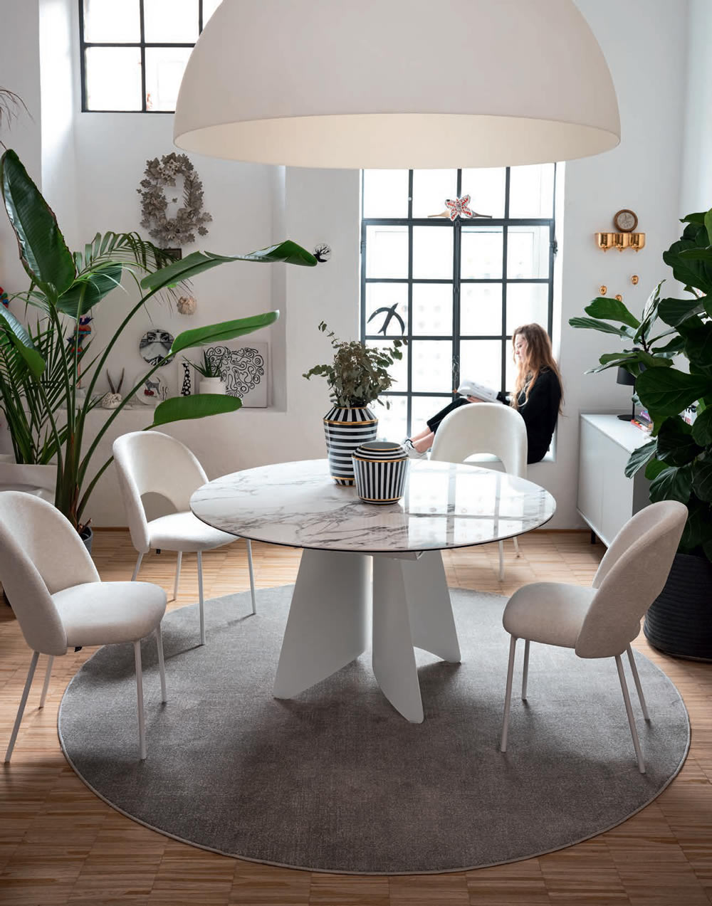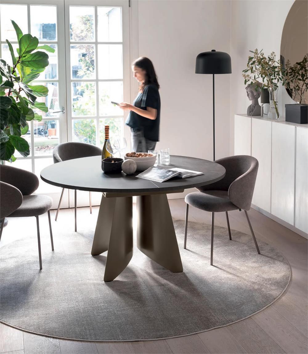 Leggera e quasi sospesa, la base delicatamente curvata in lamiera del tavolo Orion evoca l'immagine di una ballerina sulle punte. Questa struttura elegante è disponibile in tre varianti: rotonda e rettangolare e a botticella. Grazie alla sua versatilità, il tavolo Orion si adatta perfettamente a qualsiasi esigenza di stile. Inoltre, i piani disponibili in ceramica e nobilitato conferiscono un tocco di raffinatezza e personalizzazione, permettendo di creare un ambiente unico e impeccabile.