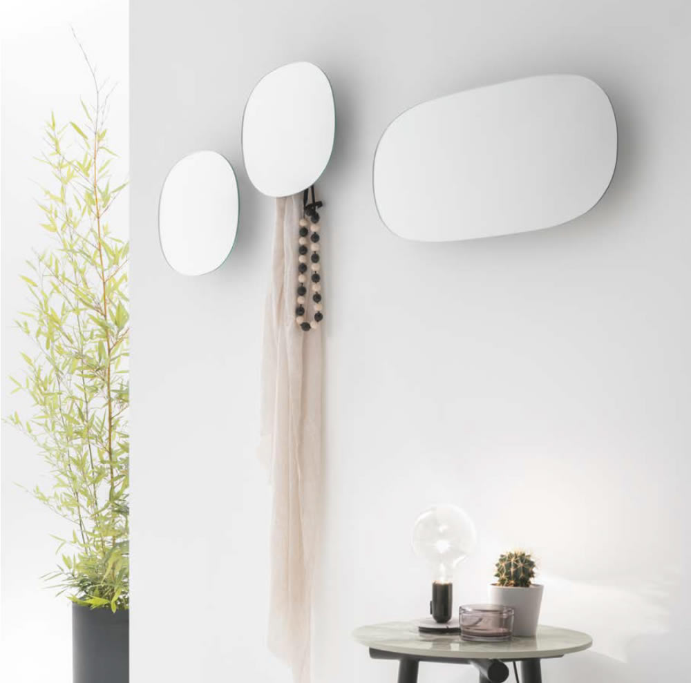 Set di tre specchi di misure diverse con appendiabiti.