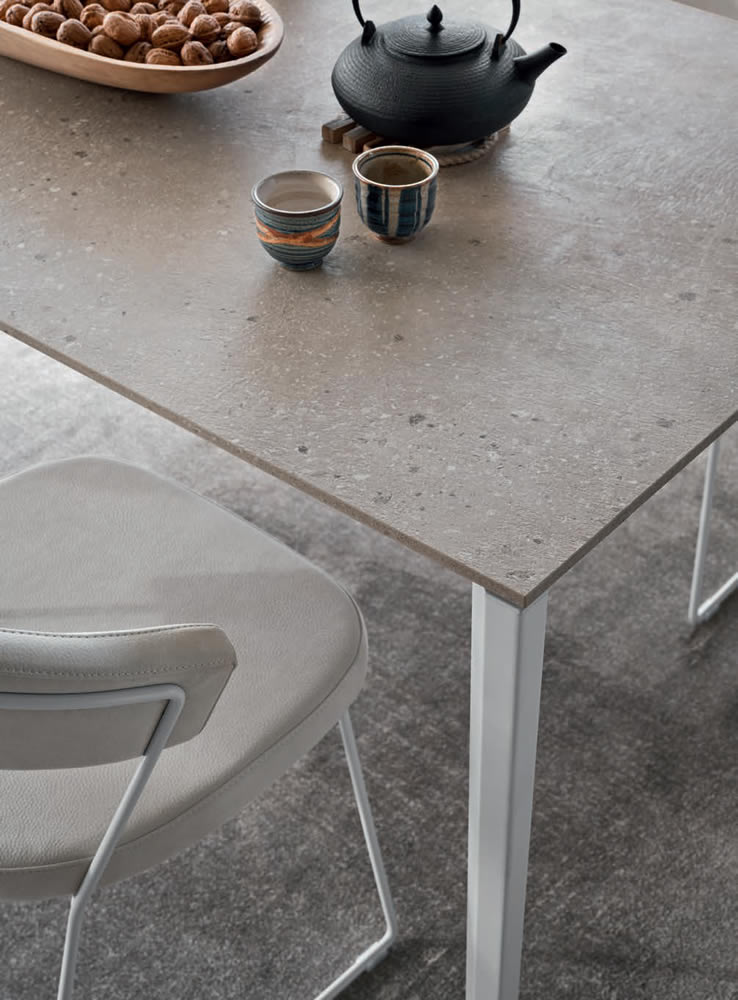 Tavolo con piano in nobilitato L. 160 con 1 allunga, gambe perimetrali