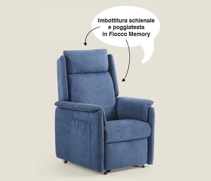 Completa di due motori che permettono movimenti indipendenti di schienale e poggiapiedi, per una perfetta regolazione del confort di seduta. Completa di movimento Lift alzapersona. Parzialmente sfoderabile.