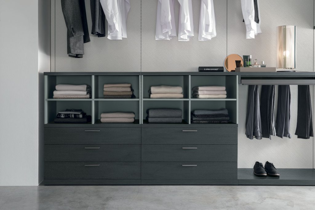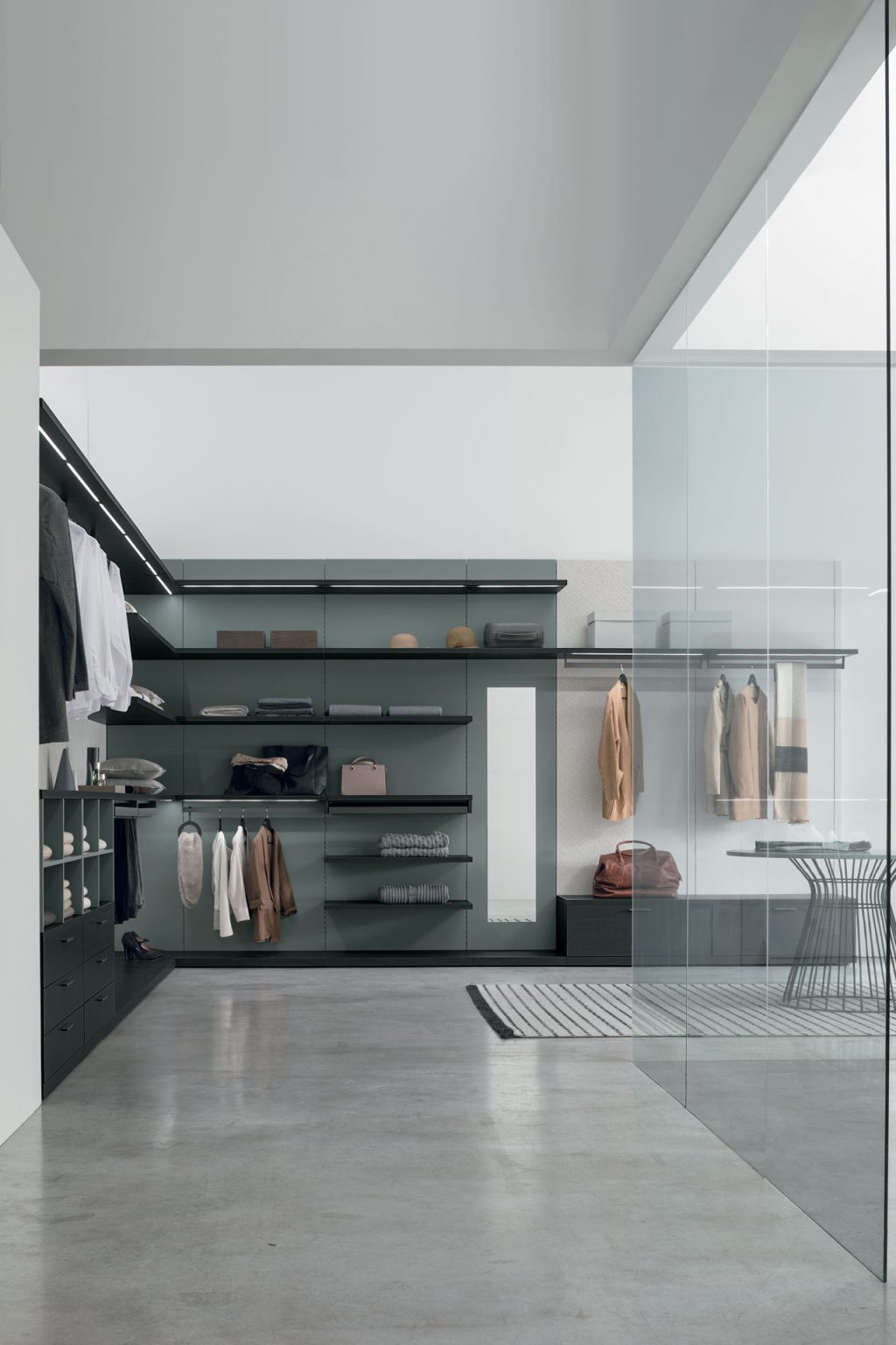 Pratico è una cabina armadio composta da boiserie personalizzabili in diverse finiture o grafiche stampate, sulle quali vengono posizionate, a seconda delle esigenze personali, diverse soluzioni di attrezzature: cassettiere sospese o a terra, ripiani con Led o accessori estraibili.