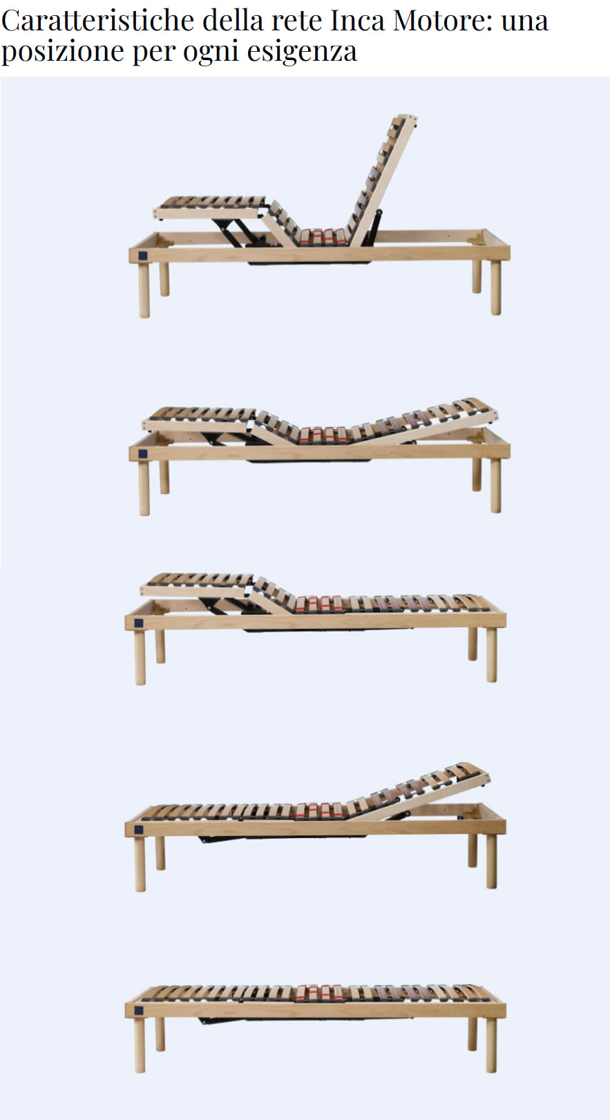 I due motori permettono di regolare la zona testa-spalle-lombare in maniera indipendente rispetto alla zona gambe-piedi.