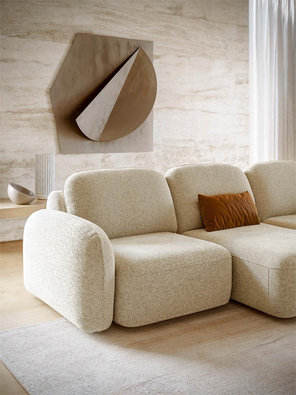 Per comporre il tuo divano, Susa ti offre la possibilità di scegliere tra moduli lineari, chaise longue e pouf in più dimensioni: una varietà di sedute che ti permette di adattare il divano al tuo spazio e alle tue esigenze. Inoltre, a completamento di questa libertà di personalizzazione, puoi vestire il divano con rivestimenti in tessuto o texil disponibili in numerose texture e colorazioni, tutti completamente sfoderabili e lavabili .
