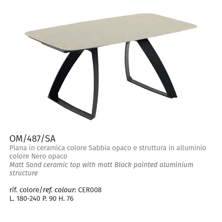 Tavolo allungabile con top in ceramica.