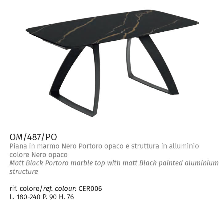 Piana in marmo Nero Portoro opaco e struttura in alluminio