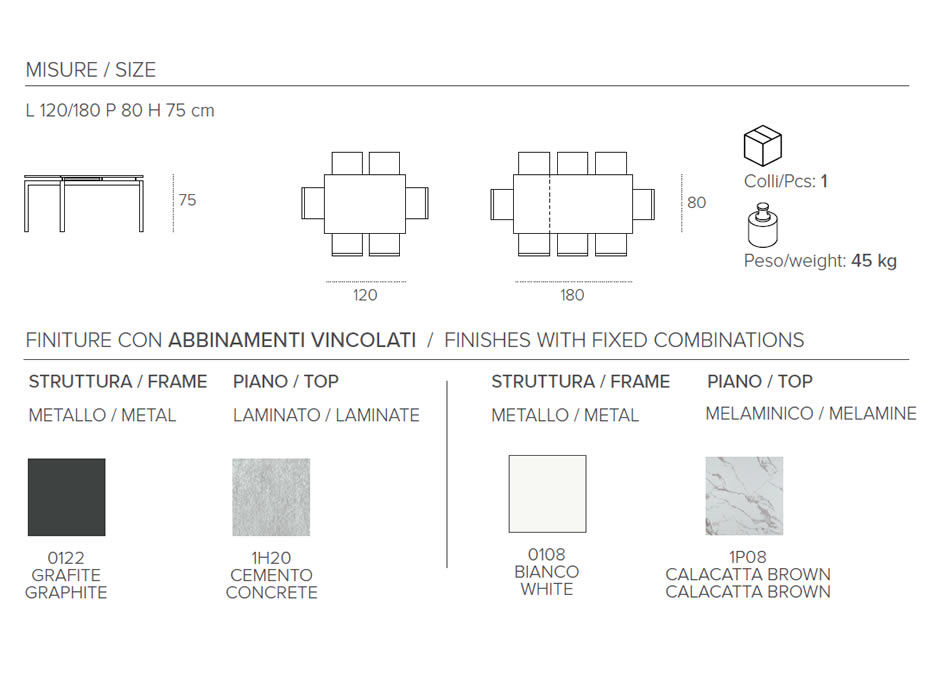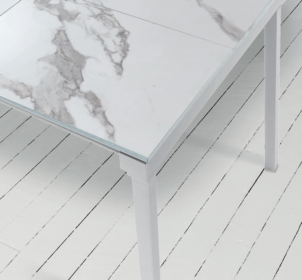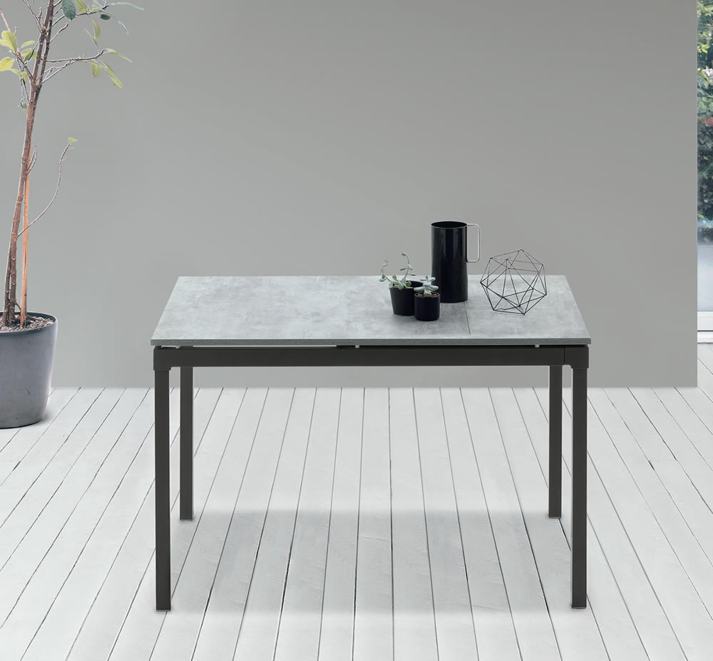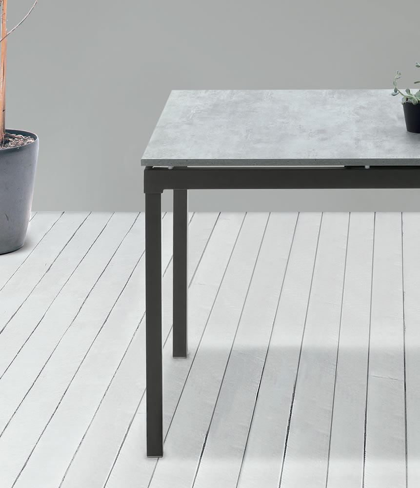 Tavolo allungabile con struttura in metallo verniciato.Piano e allunga laterale in laminato o melaminico.