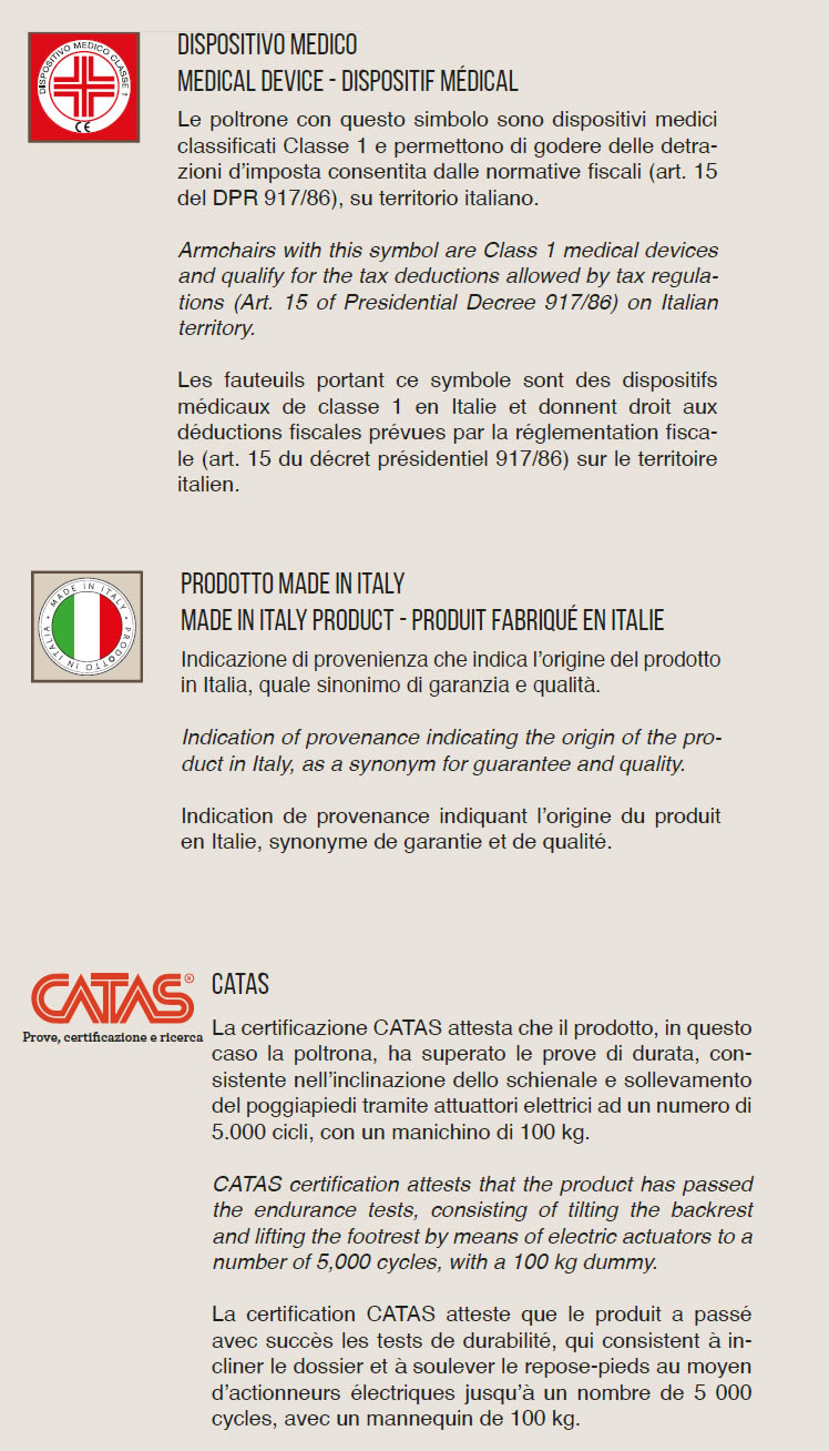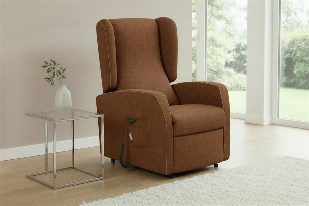 Completa di due motori che consentono movimenti indipendenti di schienale e poggiapiedi, per una perfetta regolazione del confort di seduta. Completa di movimento Lift alzapersona. Parzialmente sfoderabile.