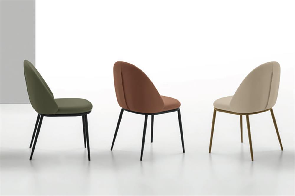 Sedia con struttura in metallo verniciato e seduta e schienale imbottiti. Disponibile con rivestimento in morbido tessuto Easy-Touch effetto pelle oppure nel nuovo tessuto Mellow Blend, soffice e resistente, che esalta il comfort della seduta.