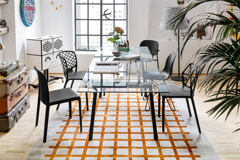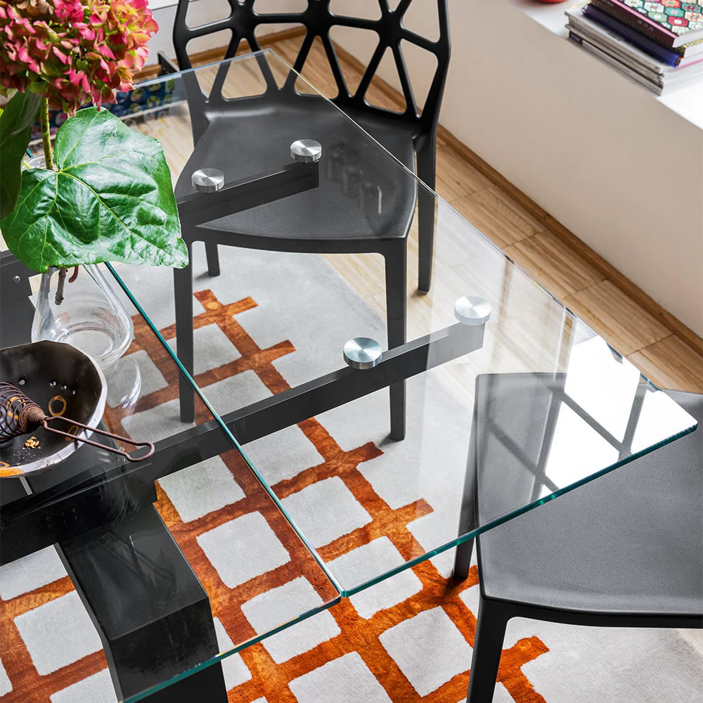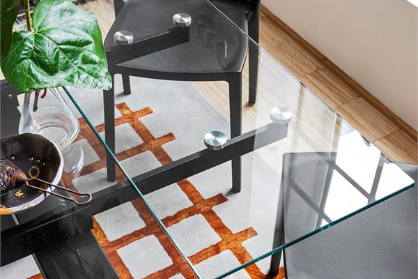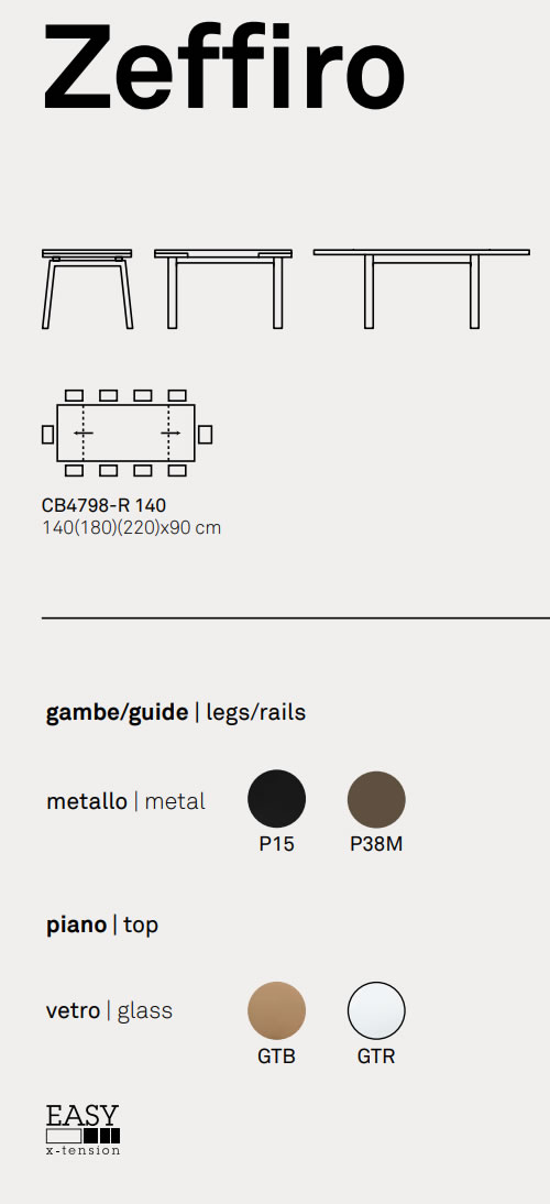 Zeffiro è il tavolo allungabile con piano in vetro.