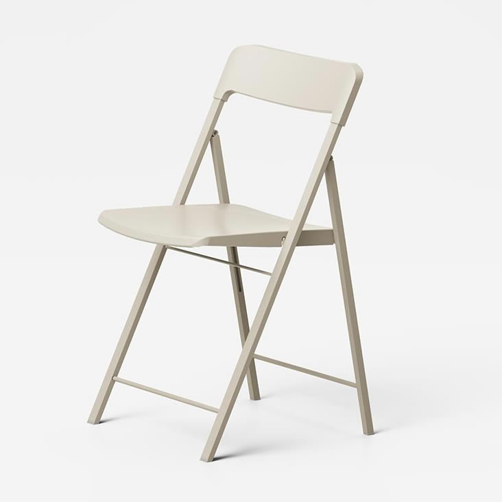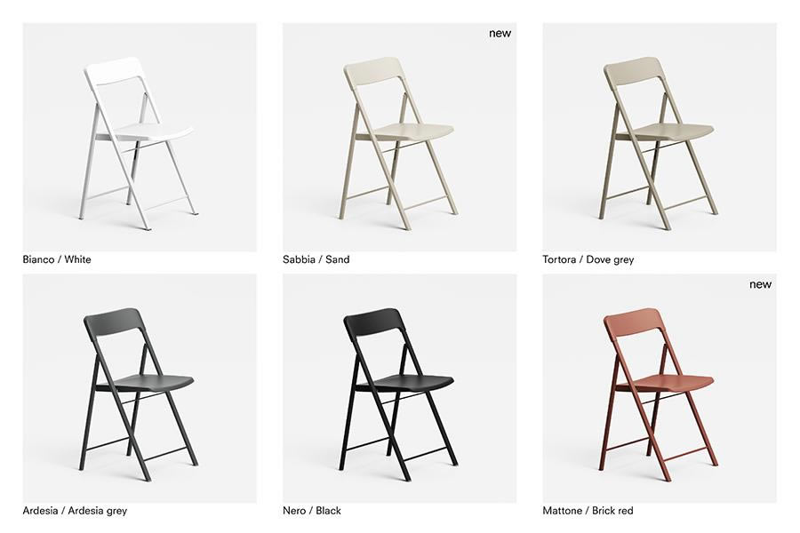 Sedia pieghevole con struttura in acciaio verniciato seduta e schienale in polipropilene.